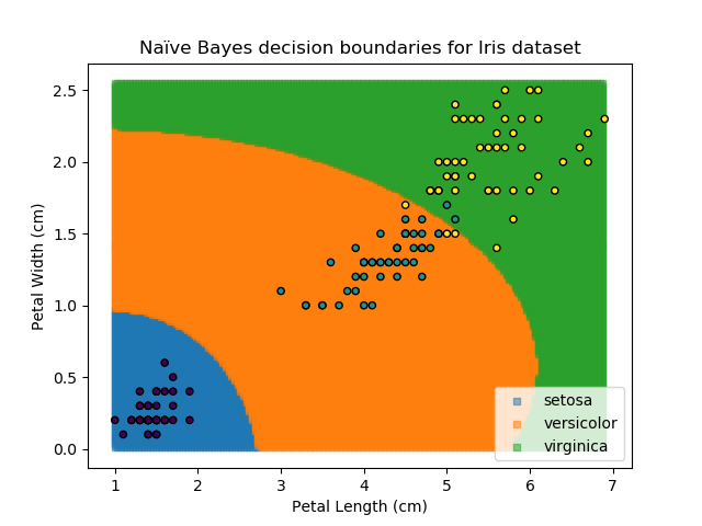 The Naïve Bayes classifier works in a similar way. It asks "what is the probability of this point belonging to this group, given that it has these feature values?". The data-point is then assigned to the group with the highest probability. In order to calculate each of the probabilities, some information needs to be provided about how each of the features are distributed. Typically, the distributions are assumed to be Gaussian i.e. that they follow a Normal distribution.