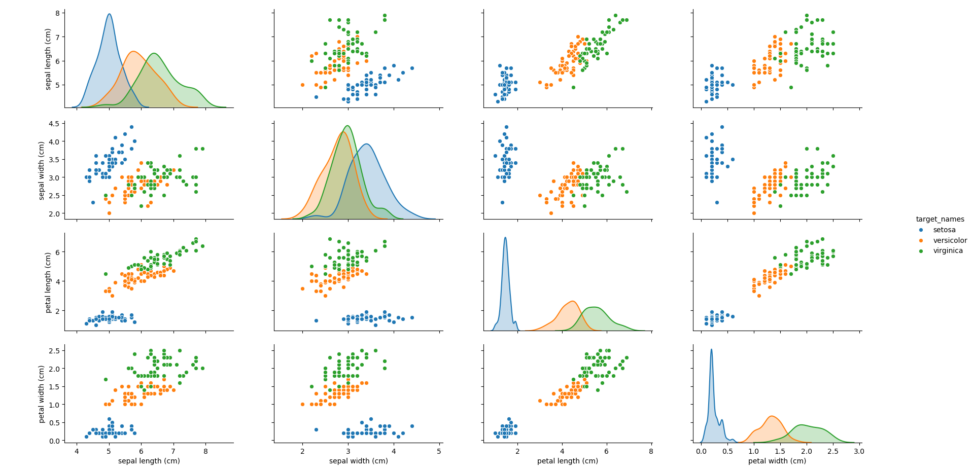It can be seen that the blue group (Setosa) generally stands apart from the other two groups, making it simple to identify. However, depending on the feature, it can be seen that there can be overlap between the other two groups (Virginica and Versicolor). How different algorithms treat this overlap will be an interesting point to note throughout.
